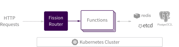 Create API backends for web and mobile apps without managing servers. Just write functions, and map them to HTTP routes. Fission takes care of the rest: deployment, routing, scalability, availability. Use Kubernetes’ service discovery and networking to interoperate with other services, like Redis, Postgres, Etcd etc.